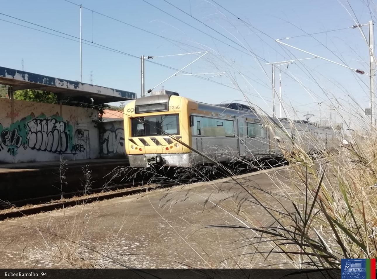 | Descrição | A UTE 2256 da CP no antigo apeadeiro da Quinta das Torres, com o comboio Regional 4421 (Lisboa-Santa Apolónia - Tomar). 22/03/2021 |