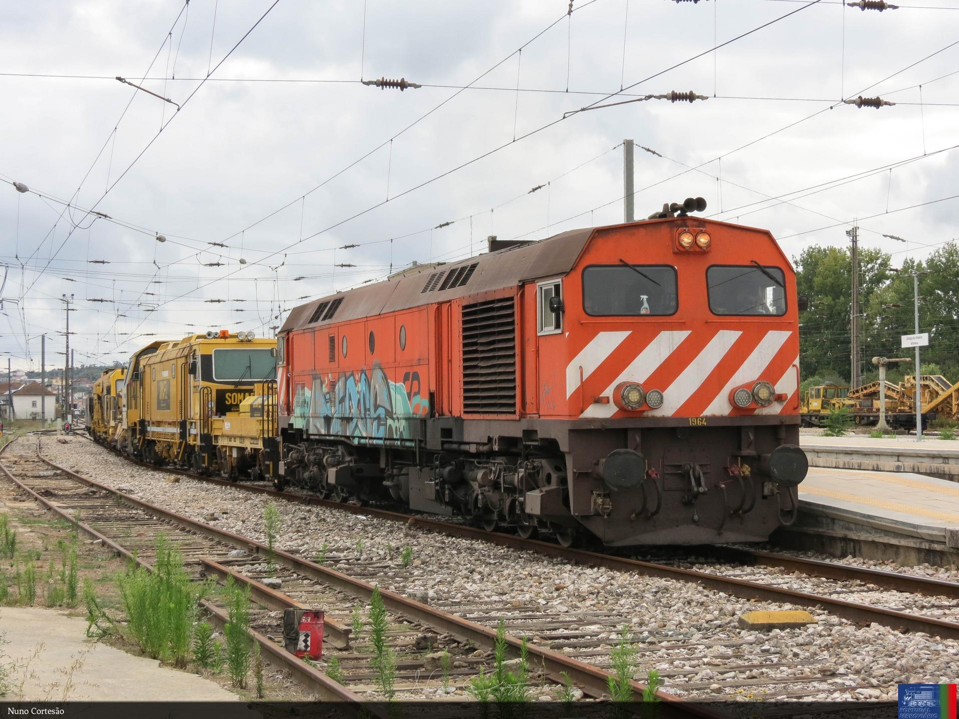 | Descrição | Bombardier 1964 parada em Alfarelos, após ter chegado proveniente do Entroncamento com a marcha Especial 95229, composta por máquinas de vias e 2 vagões US. |