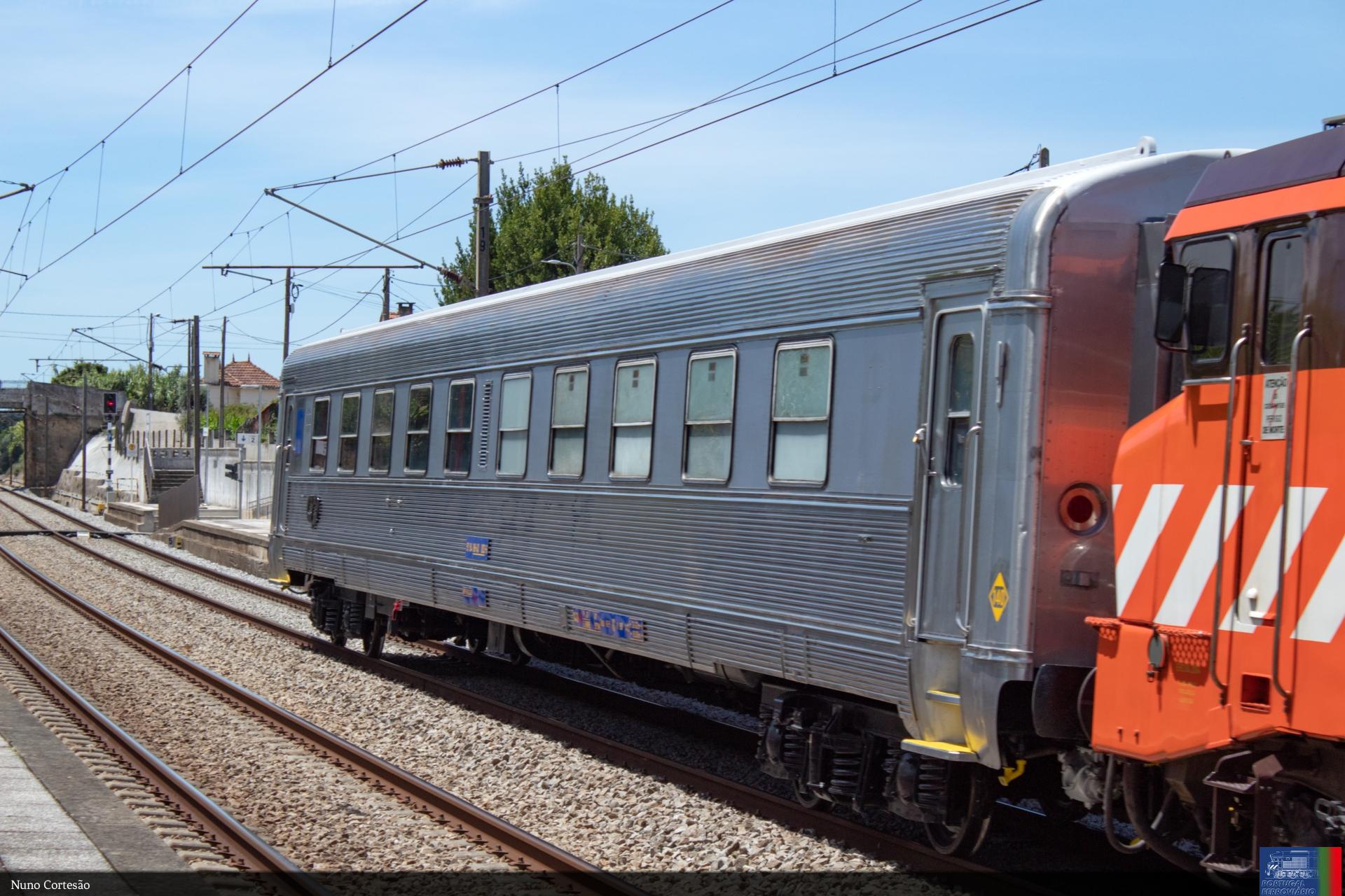 | Descrição | A carruagem 88-40 003 na ida para Contumil a reboque da "Nez-Cassé" 2609 a passar em Vila Pouca do Campo, após recuperação no Entroncamento. |